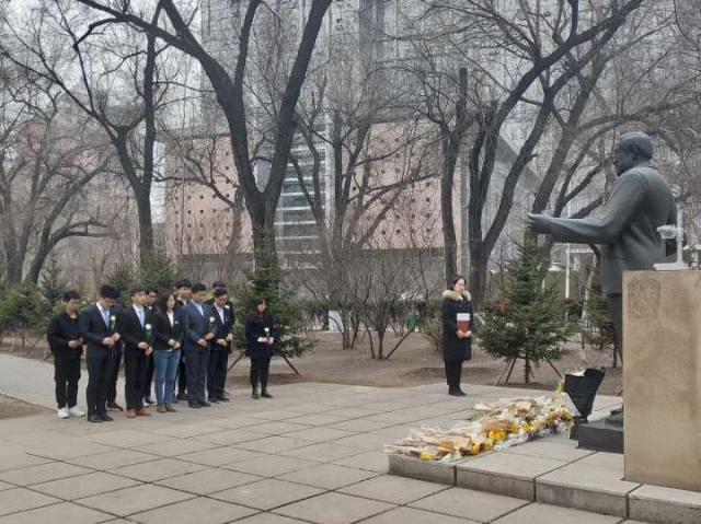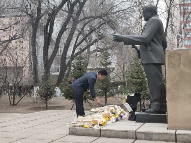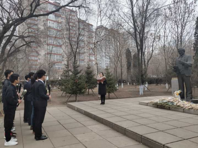 细雨蒙蒙,四月初的哈尔滨夹杂着些许寒冷,为庄严的马祖光院士雕塑更添一丝肃穆。中午十二点半,仪器学院团委副书记修文心,仪器学院研究生会,仪器学院团委员工会全体成员在马祖光院士雕塑前静驻,员工会主席刘青鑫带领大家追忆了马祖光院士一生的光辉事迹和杰出贡献。马祖光院士在科研教育第一线坚持奋斗了一生,为我国的科研教育事业殚精竭虑,鞠躬尽瘁。培养了大批优秀的科技人才、创造了众多的科技创新发明,创立了世界一流的科研机构,为学校,为国家,留下了不可磨灭的伟大贡献。更重要的是,马祖光院士始终对待员工认真耐心,对待工作一丝不苟,他克己奉公,淡泊名利的崇高美德和甘为人梯、谦逊质朴的无私襟怀更是留给我们的宝贵精神财富!这种伟大的人格力量感人至深,催人奋进!