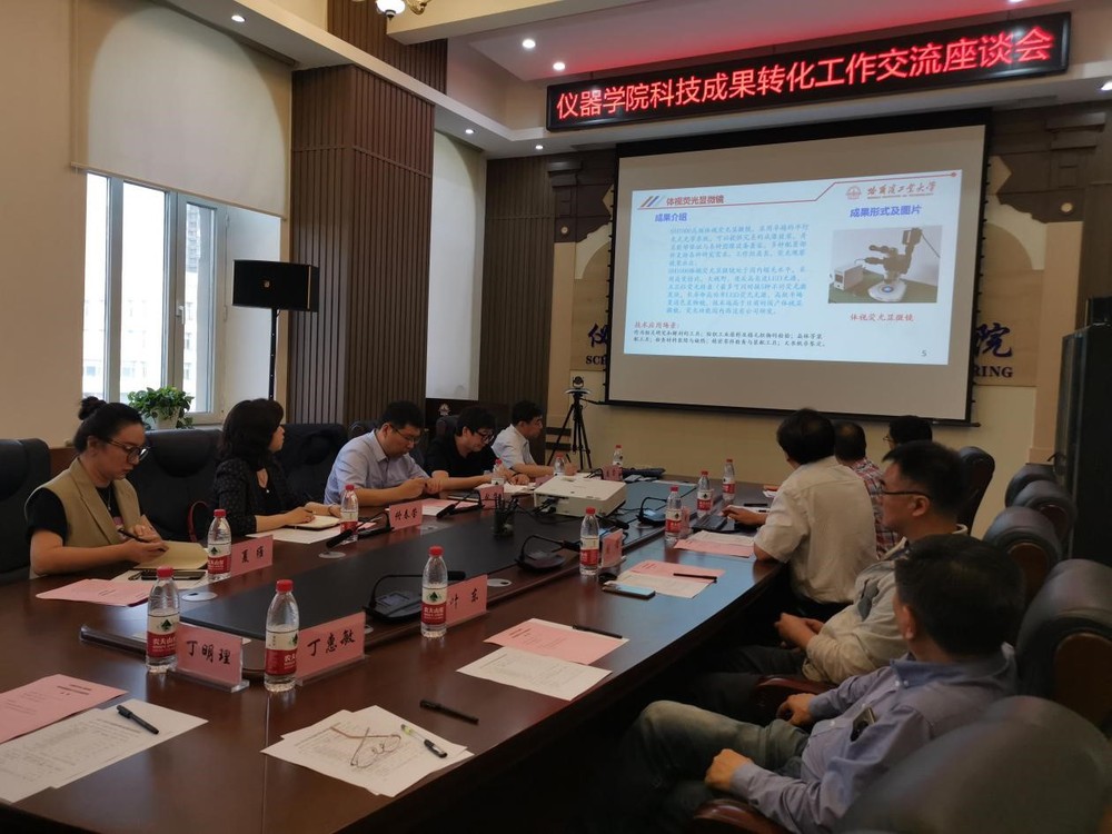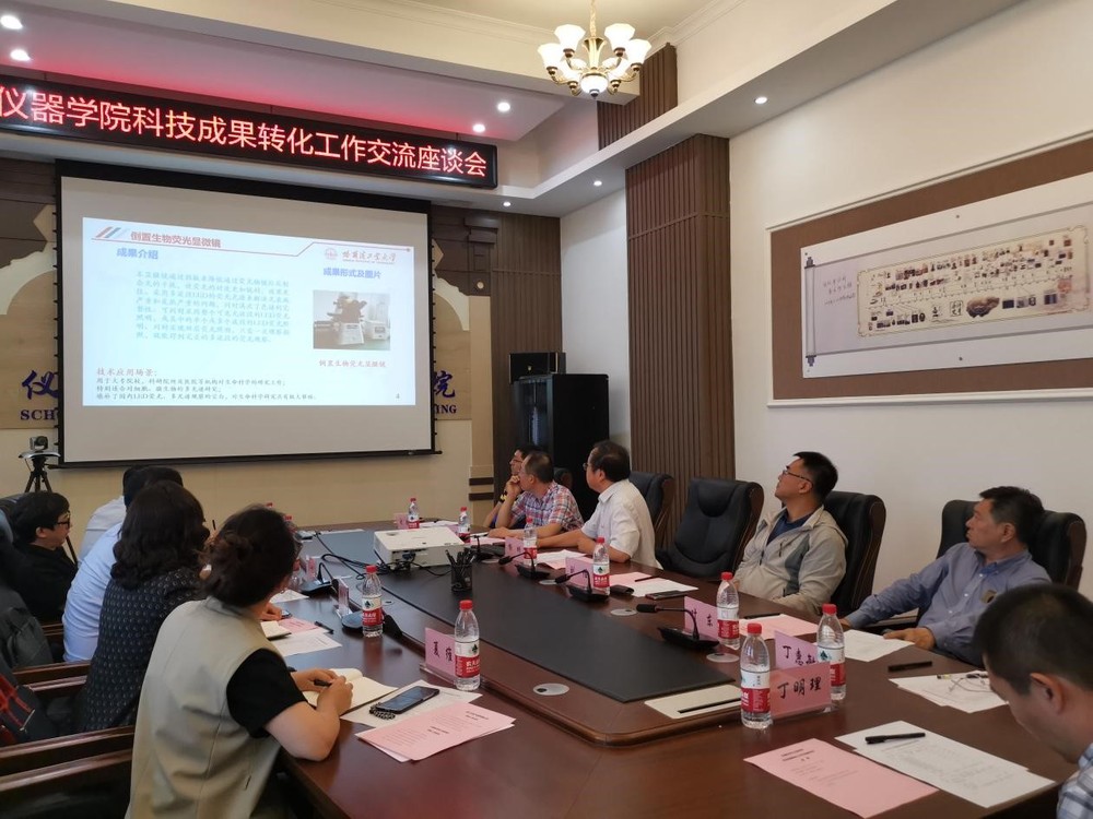 公司党委书记杨彬教授汇报了仪器学院科技成果转化工作,介绍了学院可转化知识产权情况,以及已建及筹建的高新技术企业等规划。资产经营有限公司夏维部长介绍了哈工大成果转化工作取得的成效,并对哈工大科技成果转化相关政策进行了深入解读。