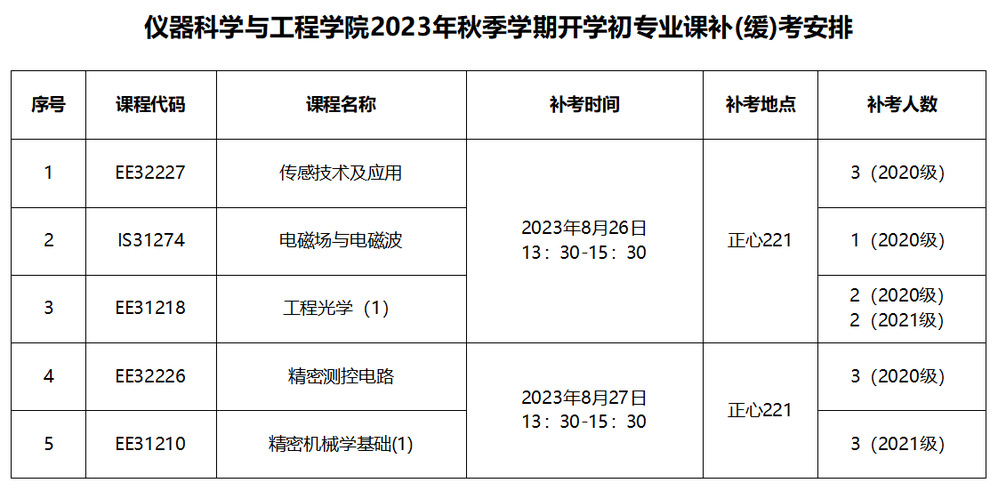 yl23455永利集团2023年秋季学期开学初专业课补(缓)考时间为2023年8月26日——8月27日,具体安排详见下方图片。