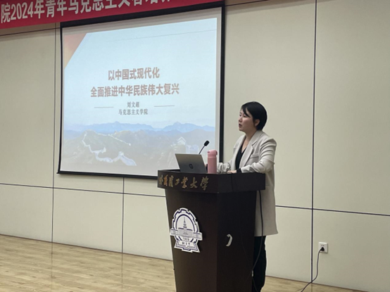 随后进行培训环节,本次团校第一讲邀请到马克思主义学院刘文超老师为学员带来以《以中国式现代化全面推进中华民族伟大复兴》为题的专场培训。培训开始后,刘老师分别从“什么是中国式现代化”“为什么要走中国式现代化”“如何走好中国式现代化”三个方面展开论述。通过刘老师的精彩讲解,使学员们更加深入了解了中国式现代化的发展逻辑、核心要义和前进方向,也更加明确了自身所肩负的担当与使命。培训最后,刘老师强调,作为新时代优秀青年,我们要深刻理解继承中华优秀文化的使命感和责任感,始终坚持文化自信,勇挑重担,锐意进取,在守正创新中将中华优秀传统文化发扬光大。