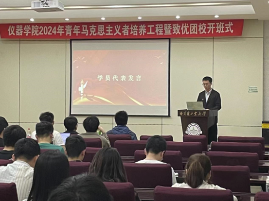 为切实把青年工作作为战略性工作抓实、抓好,持续加强学院团员青年思想政治引领,培养有理想、敢担当、能吃苦、肯奋斗的新时代好青年,做好学院员工干部与青年马克思主义者教育培训工作,4月17日晚,仪器学院于活动中心330举办2024年青年马克思主义者培养工程暨致优中级团校开班式及第一讲。仪器学院学工负责人董文卓、团委书记修文心、团委副书记迟潇雨、赵冀宇出席。仪器学院全体团学骨干参加本次培训。