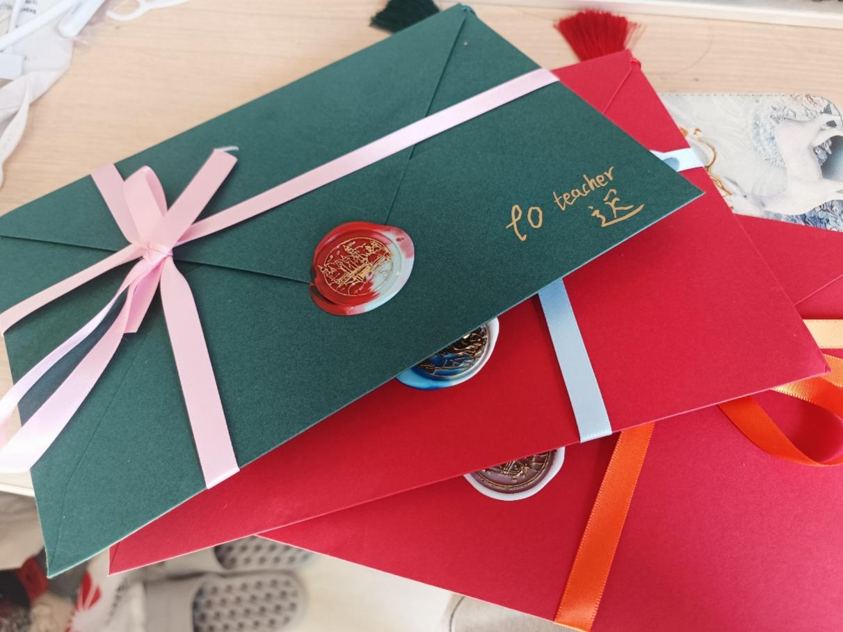 同学们在节日前将贺卡写好后装入信封,充分发挥创意、精心设计,并用绸缎和印章装饰信封,用行动表达对老师们的真挚祝福。9月10日上午,同学们在课后将各自精心制作的贺卡献给教师,对在仪器学院教学科研、管理及服务岗位上辛勤付出的全体教师致以最深的敬意和最诚挚的节日祝福。与此同时,老师们还讲述自己教书育人的工作生活经历,展现了哈工大人培根铸魂的师德师风和拳拳爱国心。在场同学们感悟到身为新一代哈工大人更当追随前辈们的脚步,修身立德、严于律己、不辍耕耘,努力成为可堪大用、能担重任的栋梁之才。
