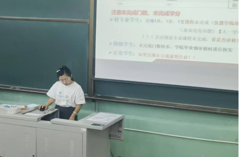 2024年9月13日,仪器学院在电机楼40025教室召开2024年秋季学期2021级本科生年级大会。会议内容主要包括为员工新学期学习生活安排答疑解惑、明确规划、助推实现目标。仪器学院副经理陆振刚教授、教学秘书衣芮莹老师、辅导员迟潇雨老师以及2021级全体本科生参会,会议由2021级本科生辅导员迟潇雨主持。