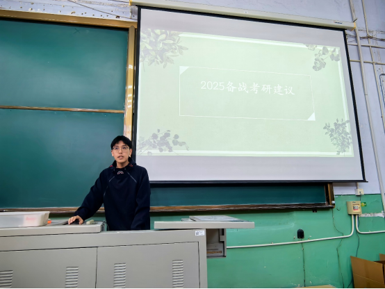 随后,辅导员迟潇雨老师详细解答了同学们关于升学、就业等相关问题,并详细介绍了前两届本硕同学的毕业去向及就业签约情况,对目前就业形势、升学去向进行详细分析,重点介绍了就业前期准备和签约流程,并鼓励大家积极准备、把握机会。其中特别提示计划考研的同学要注意时间节点、积极规划、稳住心态、全力复习,学院也将充分给予支持和指导。还介绍了包括选调在内的各类就业信息获取渠道,生源信息审核、就业推荐表、网上签约管理及违约政策等注意事项。此外,也就日常生活常见问题对同学们提出要求,包括网络文明、请假离校、寝室卫生、人身安全、诚信教育、反诈宣传等。迟潇雨老师还邀请了三名公司培养升学的硕士代表,结合自身经历向同学们提出了一些关于考研的意见建议,也介绍了硕博生活。他们号召大家做好个人规划,积极行动。