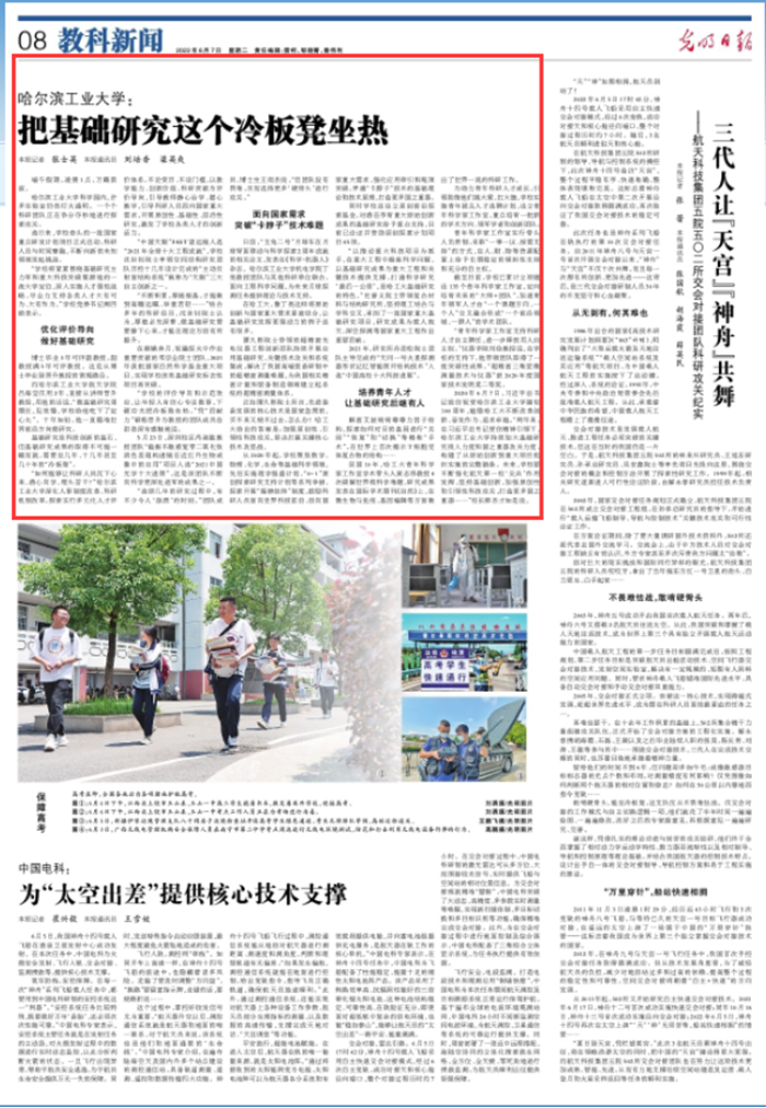《光明日报》报道公司不断强化航天第一校“尖兵”作用发挥 加强基础研究的办学特色、经验和成果